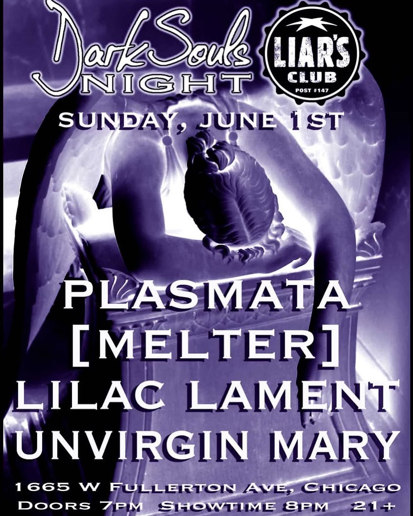 Come see local goth bands Plasmata, [melter], Lilac Lament, and Unvirgin Mary at Liar's Club on Sunday June 1st. Doors at 7pm, music at 8pm.