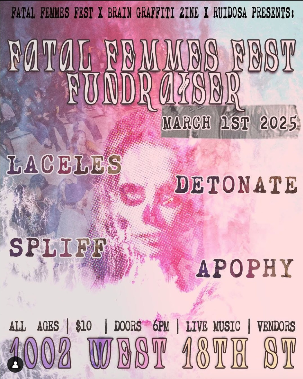 Fatal Femmes Fest, Brain Graffiti Zine, & Ruidosa present: Laceless, Detonate, Spliff, & Apophy