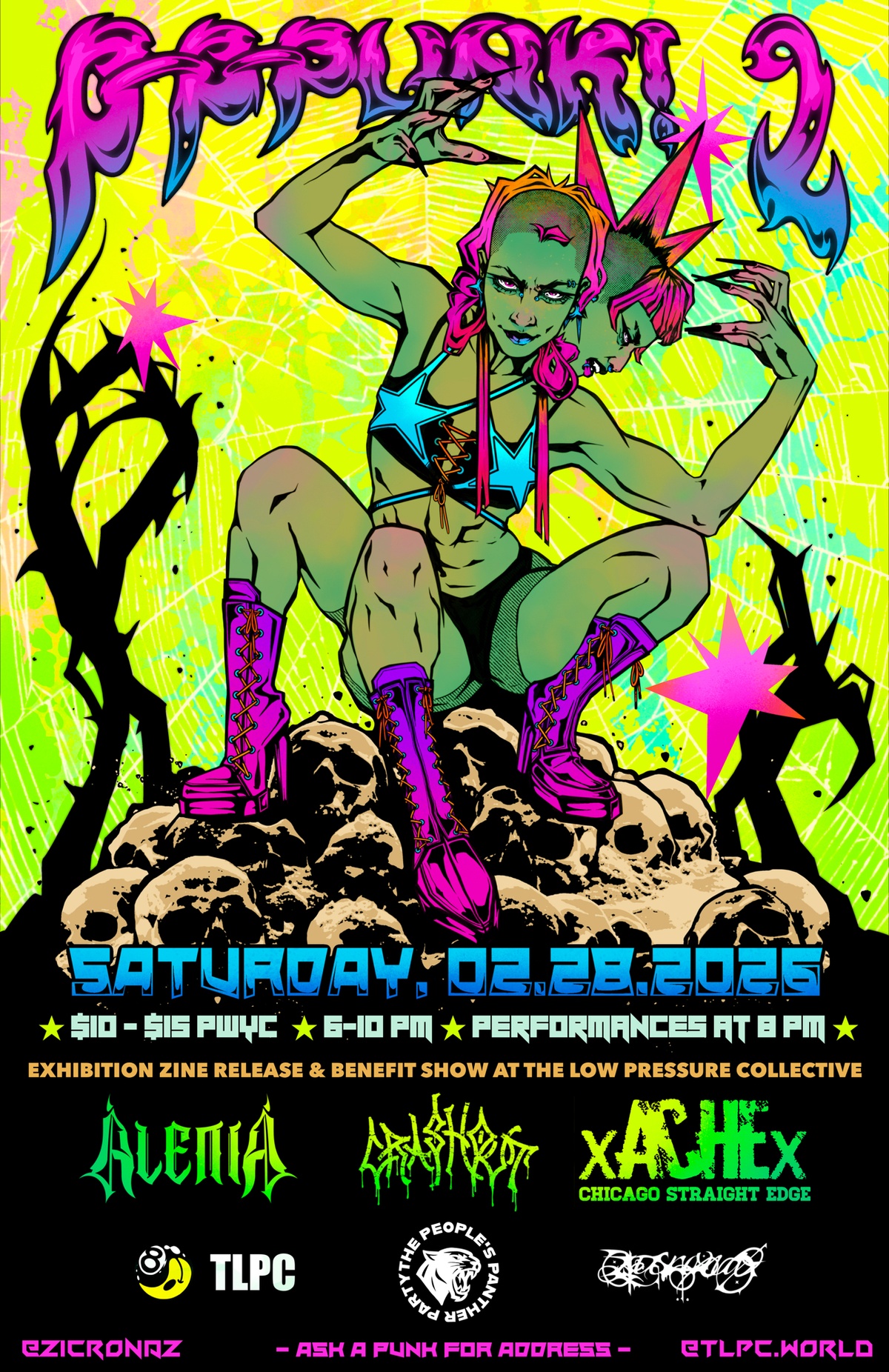 Join us on SATURDAY, FEB. 28th for the closing of P-P-PUNK! 2 ⭐️🌀 An exhibition zine release and benefit show for the @peoplespantherparty 🧟♀️