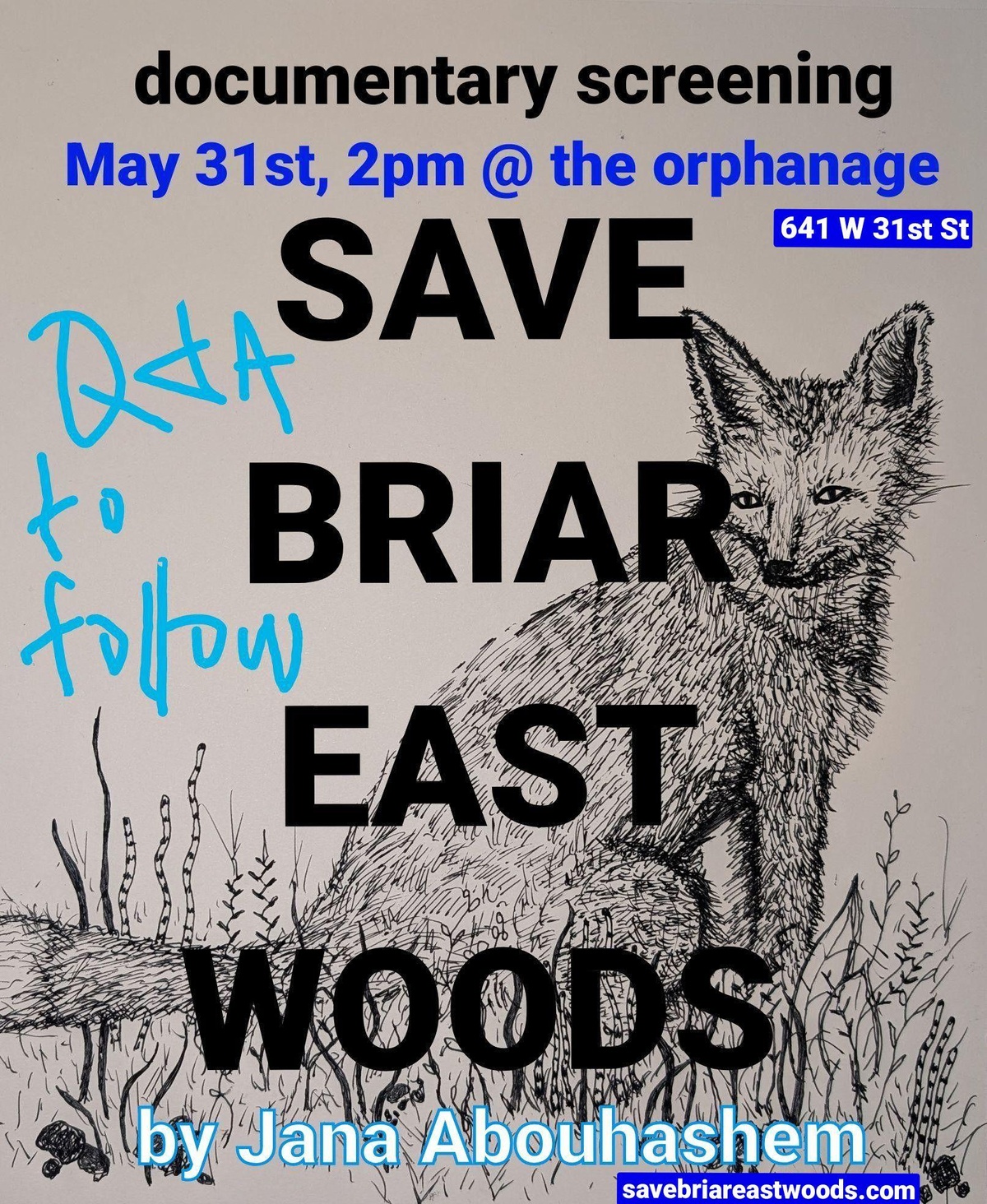 Viewing of the 25 minute documentary "Save Briar East Woods". Q&A session to follow. Join us!