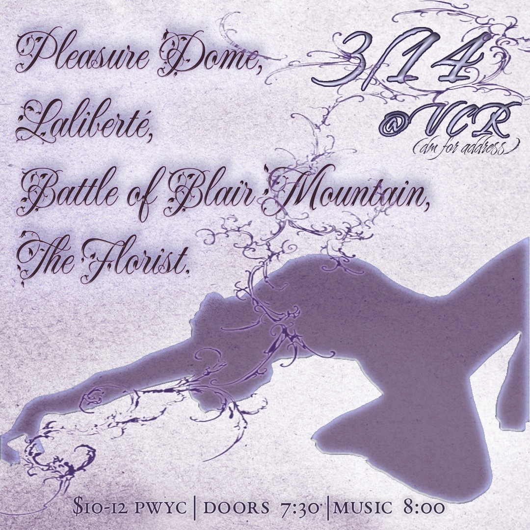 the florist, laliberté, battle of blair mountain, pleasure dome; live at VCR. $10-12 pwyc