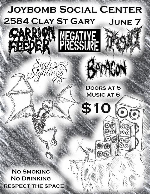 Restrictor Plate/Blazing Tomb/Suffering/Fates Hand/Frigid Thursday, Oct 09, 06:00 PM-11:55 PM Thursday 9 October 23:55 Joy Bomb Social Center 2584 Clay St. Gary, IN @blazingtomb@fateshand@frigid@restrictorplate@suffering