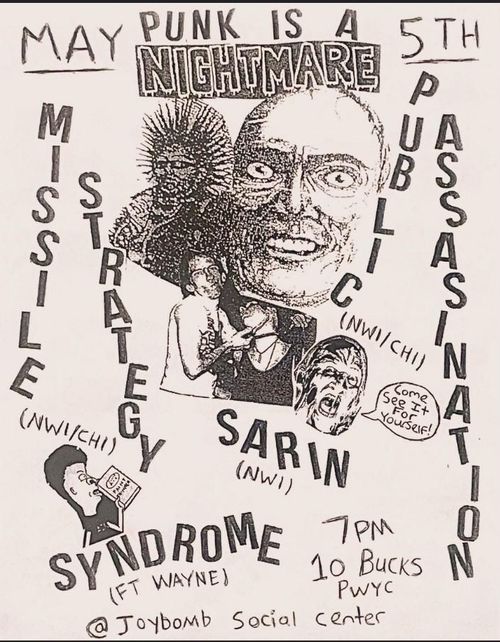 Rigorous Institution / Double Over / Navaja / Sarin Sunday, Oct 12, 07:00 PM Joy Bomb Social Center 2584 Clay St. Gary, IN