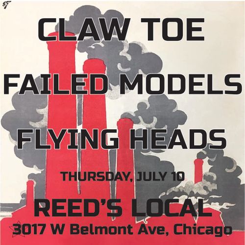 Claw Toe, Failed Models, Flying Heads Thursday, Jul 10, 09:00 PM-12:00 AM Friday 11 July 00:00 Reed’s Local 3017 W Belmont, Chicago chicago diypunkweird